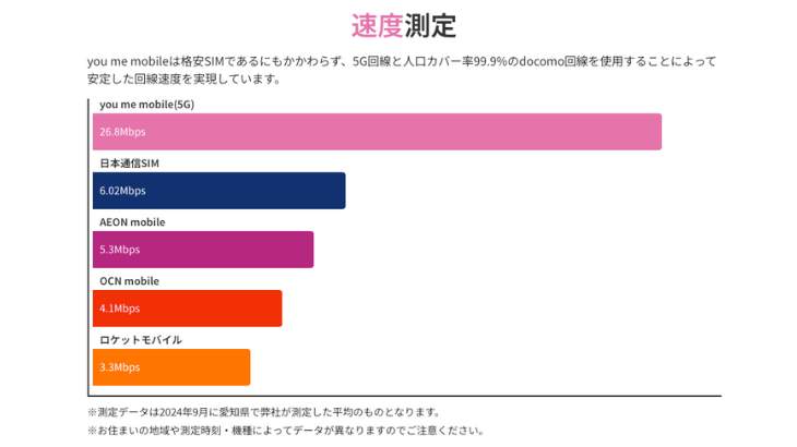 「you me mobile」は、業界最大手・docomoの回線を利用しているため、通信品質も安心。